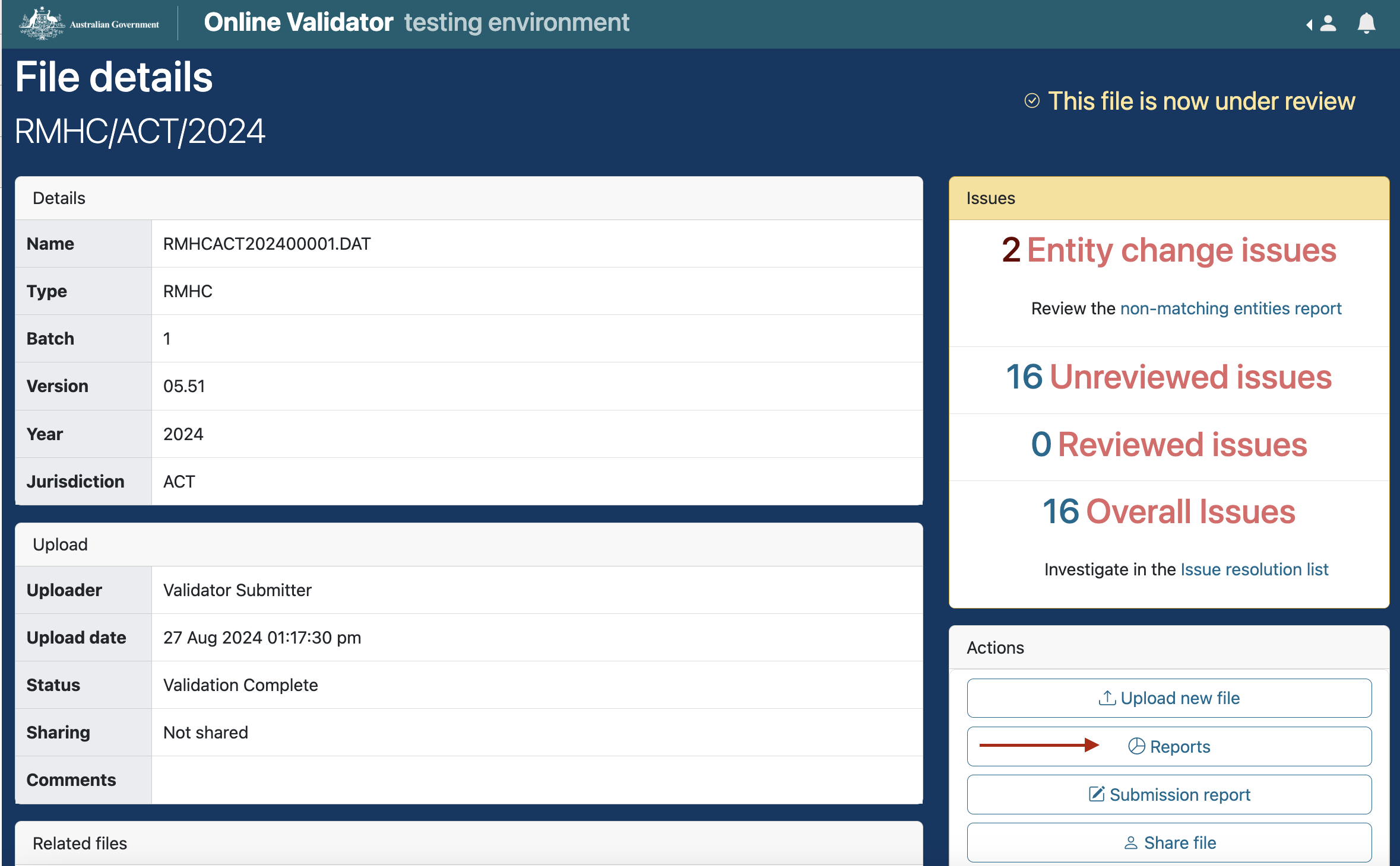 The record integrity report provides a summary of all records, and presents as a tabluar breakdown by record type of detected issues within the file being validated. This report can be used report to identify records that have structural issues, preventing the file from being proposed for review.