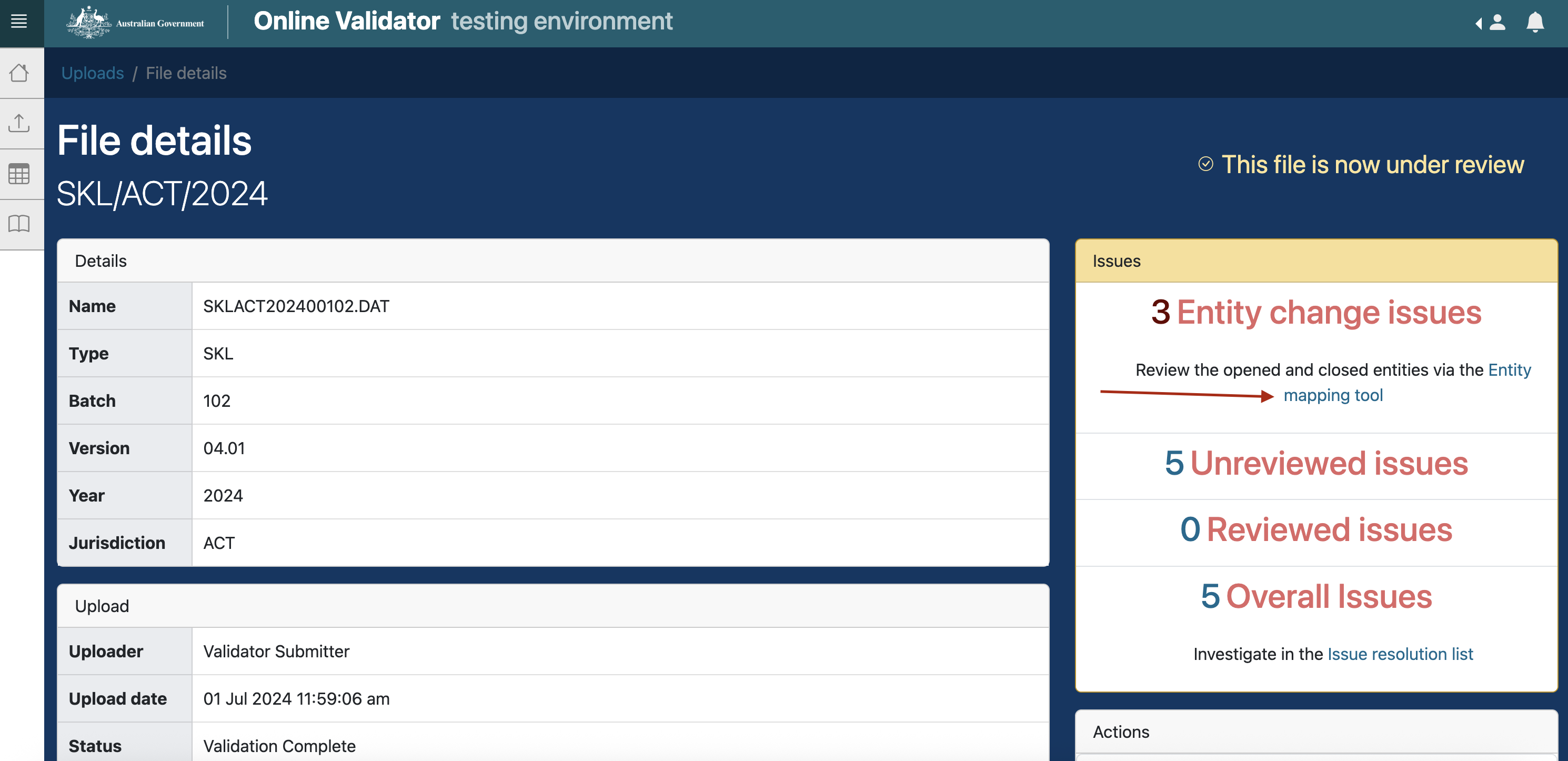 The Entity Mapping Tool enables entities to be mapped across time in the SKL files. This in turn enables the Online Validator to suppress ‘child’ issues that are caused by entity changes. For example, a change to an organisation’s name and ID will generate an issue for that change, and for each of that organisation’s ‘children’, whose parent ID has now also changed. Mapping the organisation to its historical name and ID will then suppress the issues against the organisation’s children.