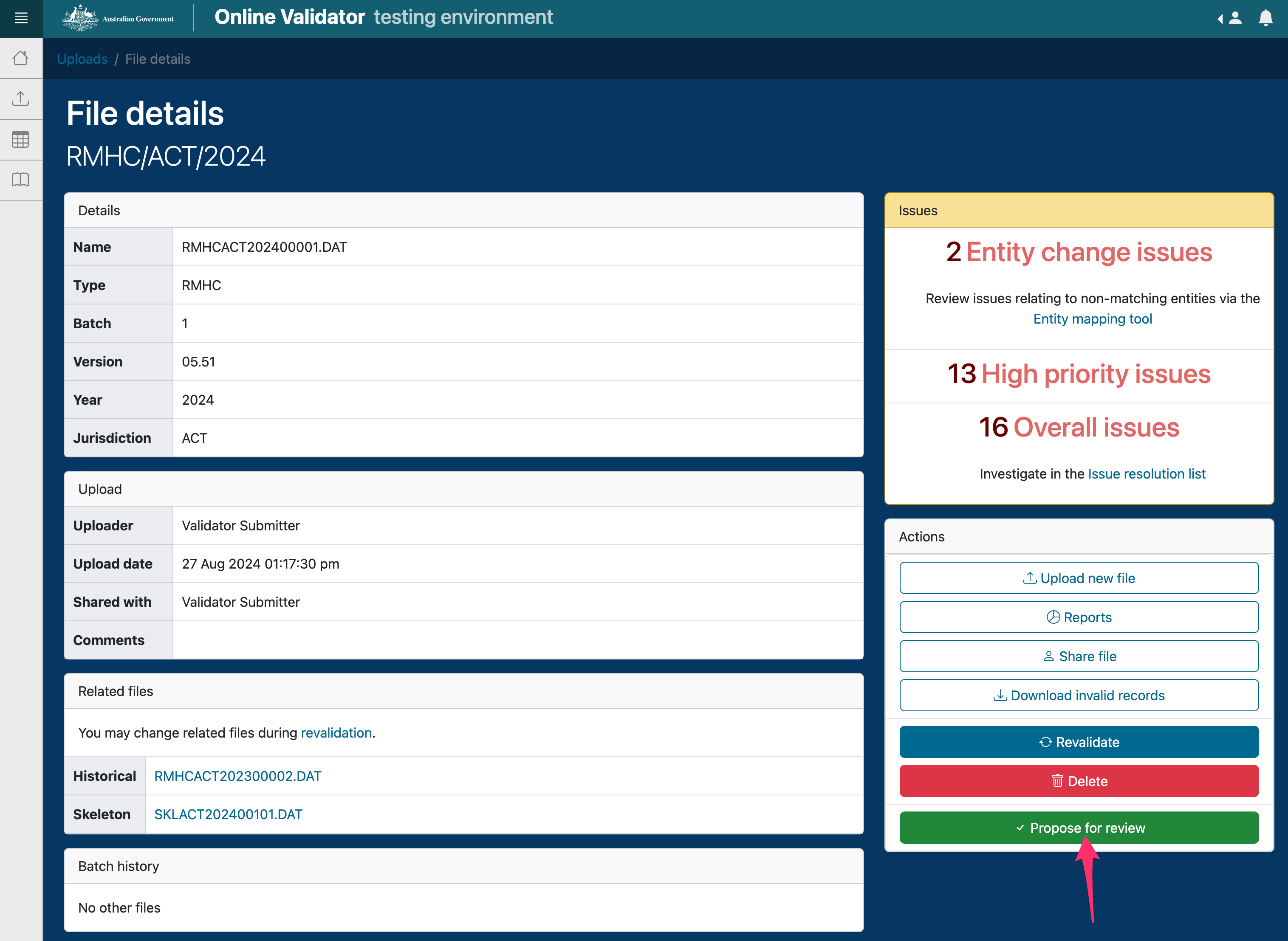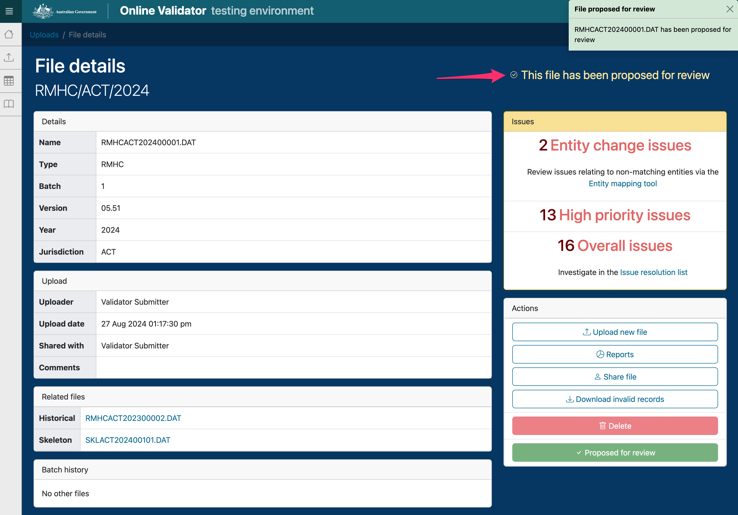 Submitters can access detailed reports on the validity of their submissions before proposing the files for review.