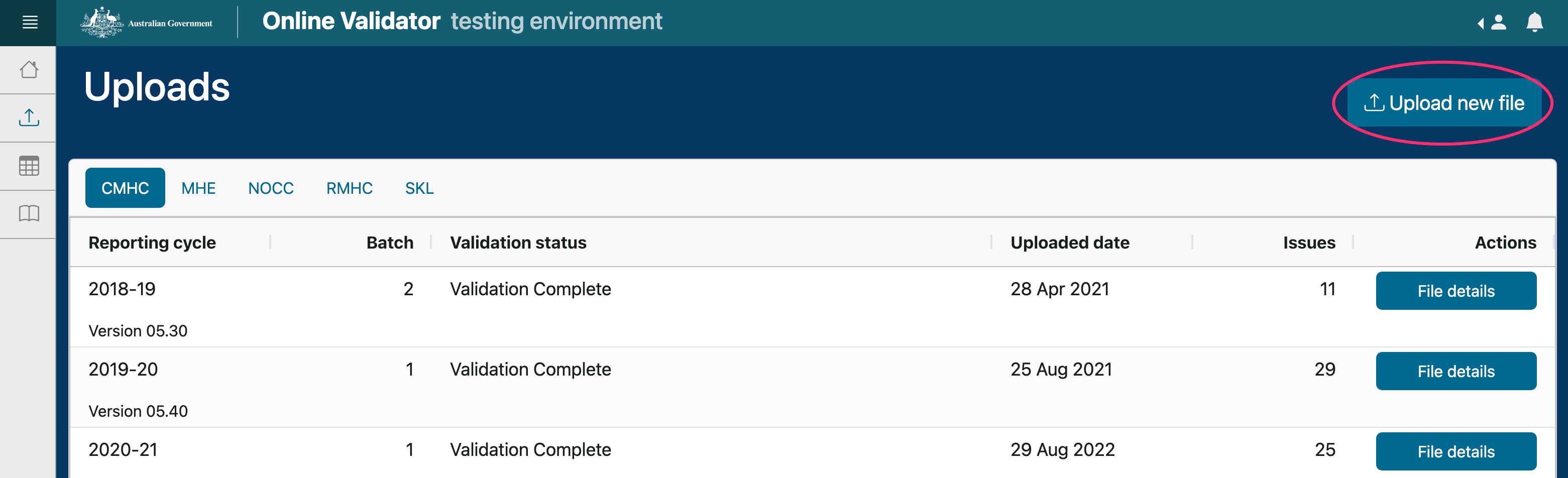 A Submitter may choose to share access to an uploaded file, that they own, with other users at any time. Recipients of shared files must be registered in the system, and be either from the Submitter’s jurisdiction or from the Commonwealth (DoH or AIHW). Sharing options are accessed via the File Details page.